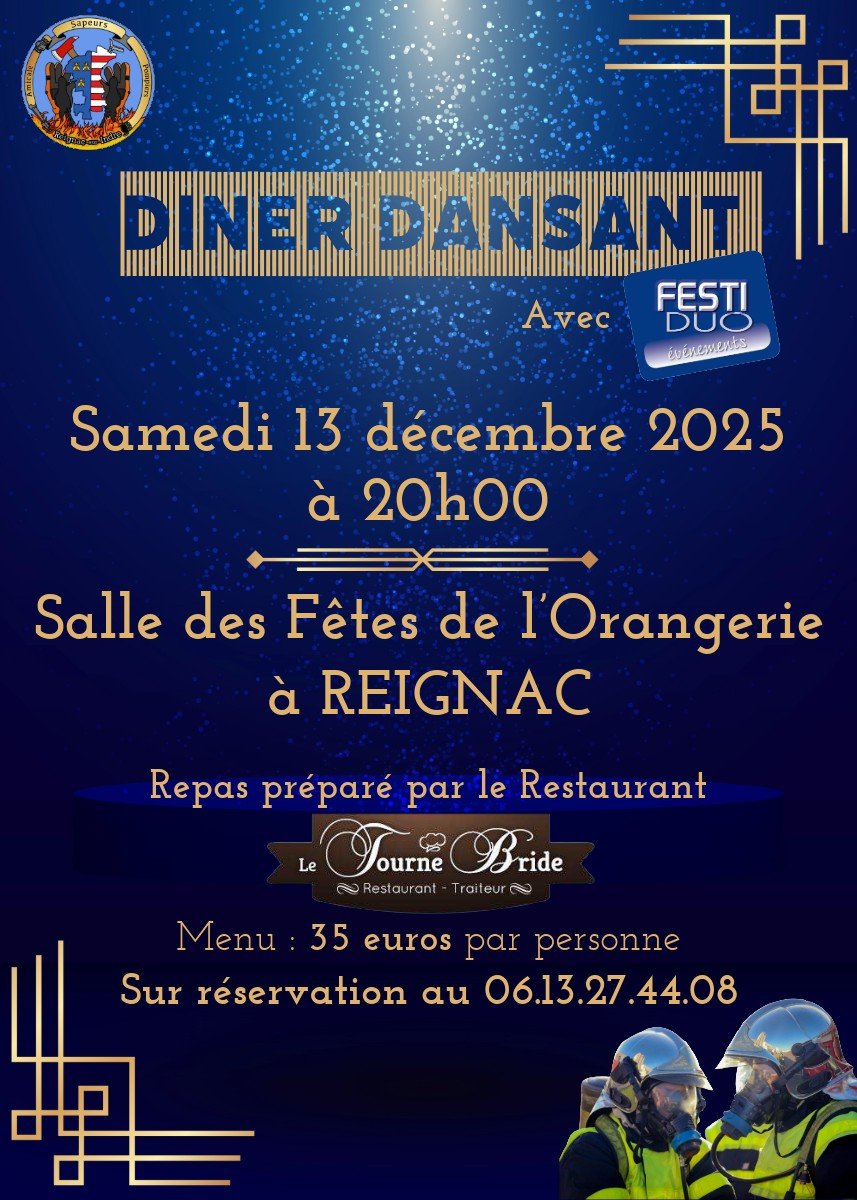 Les Sapeurs-Pompiers de Reignac-sur-Indre vous invitent à leur traditionnelle Sainte-Barbe le samedi 13 décembre 2025.